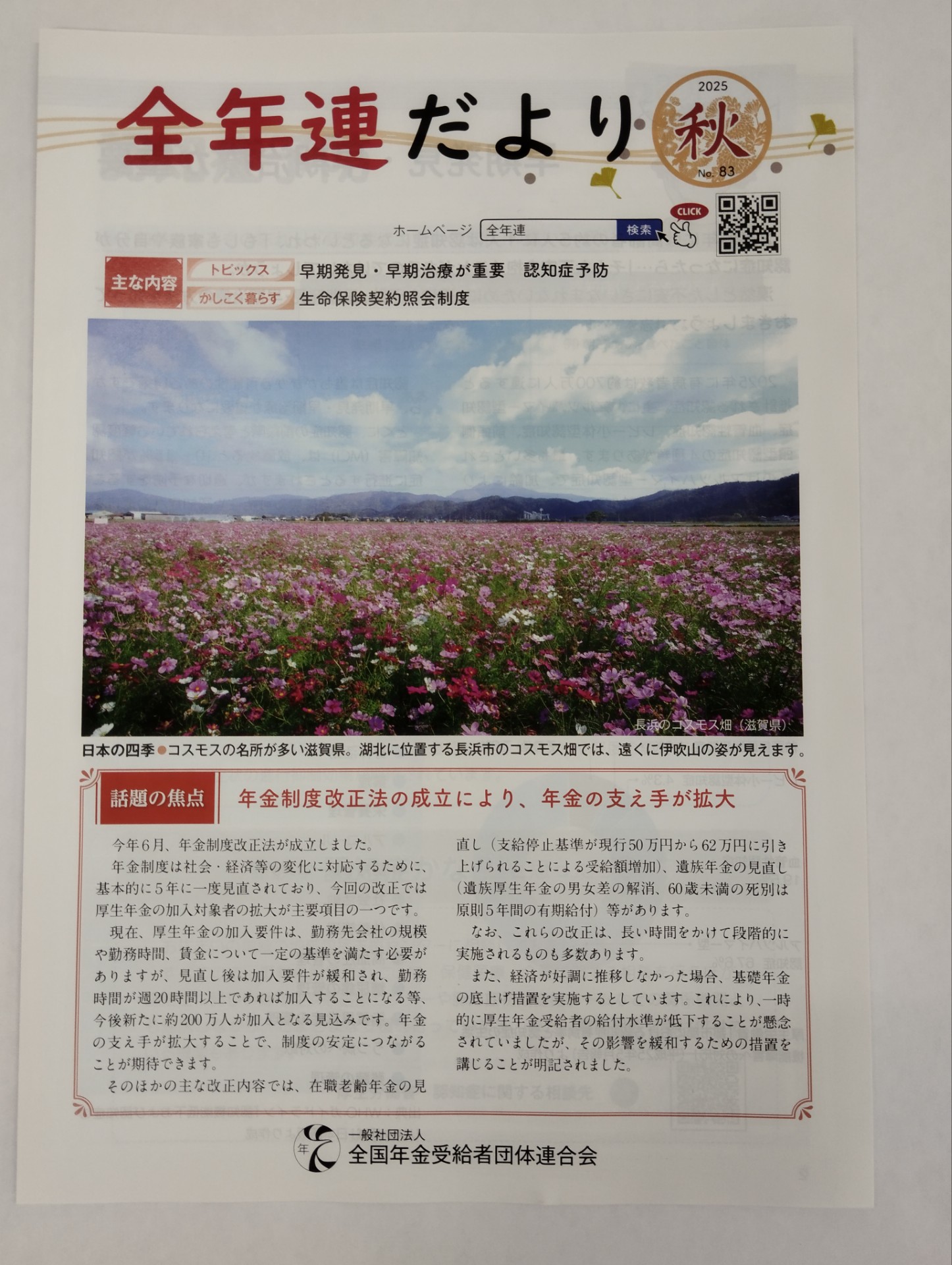 会員の皆様には、所属の都道府県年金受給者団体よりお届けします。
