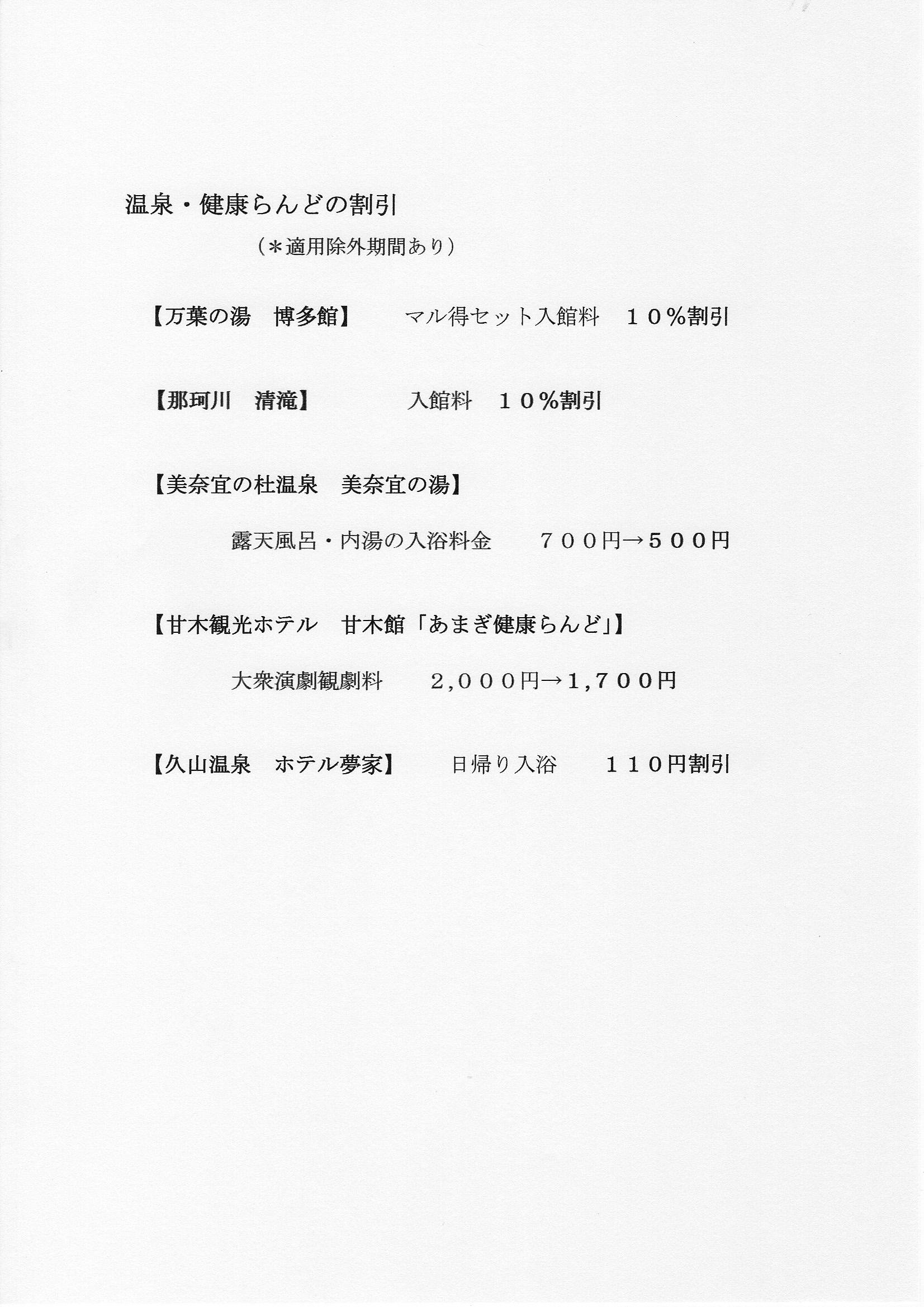 温泉・健康らんどの割引